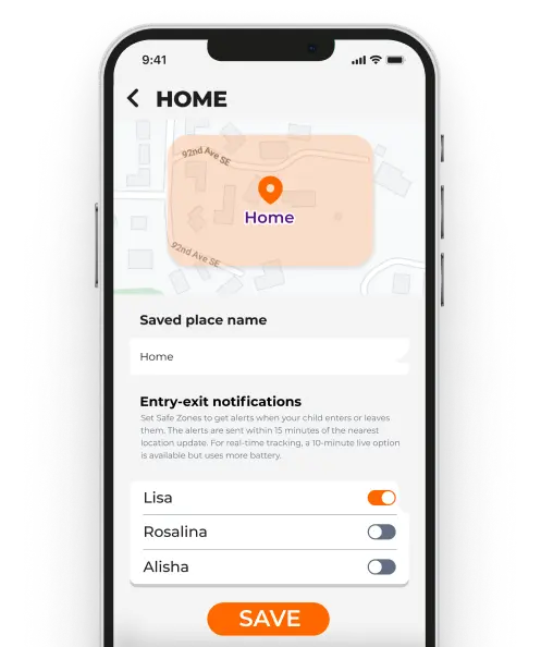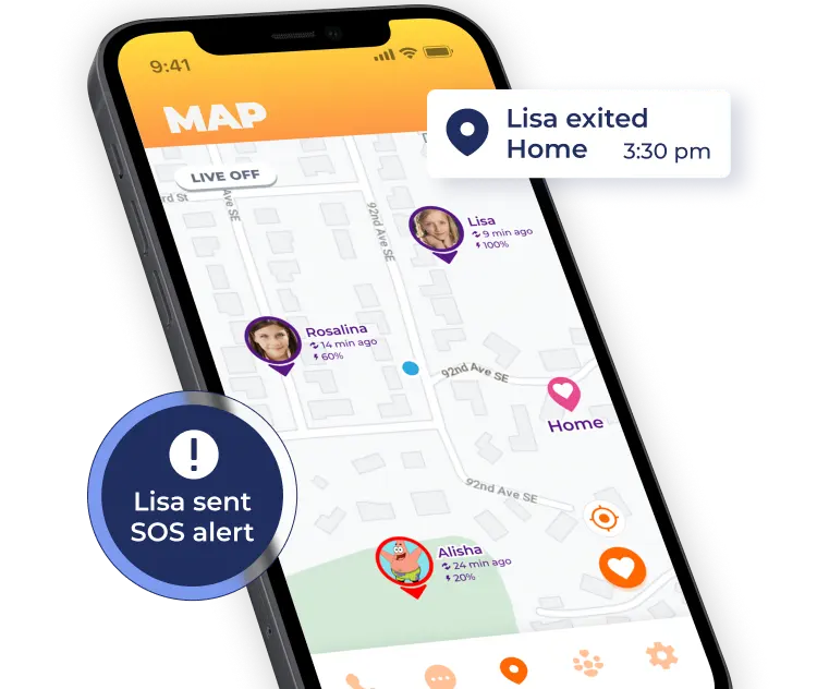 Live-Standortverfolgung, Geofencing und Benachrichtigungen für sichere Zonen.