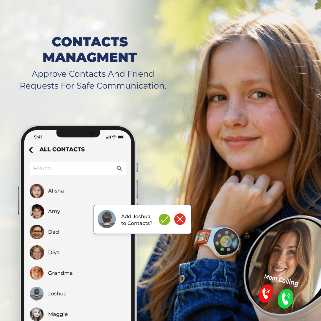 Live location, Geo-fencing, Contact Control & SOS alerts